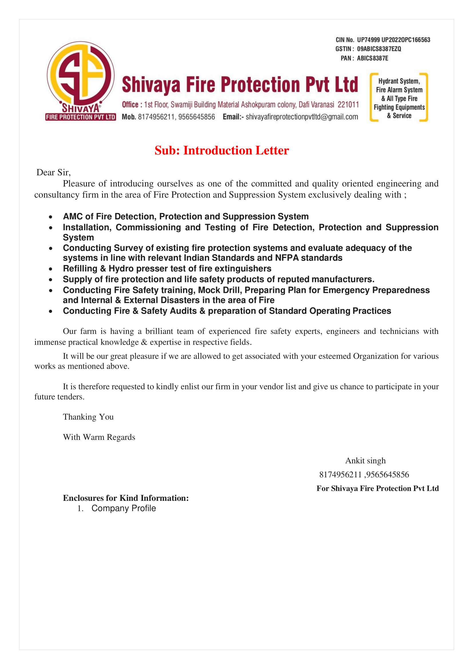 Home - Director's Profile Director- Ankit Kumar Singh Qualification- BSc Fire and Safety Engineering & Diploma Fire Safety Engineering, Nagpur, Maharashtra State Board Experience Fire Safety officer in Ntpc Shaktinaga, Reliance sasan power Limited, Lanco Anpara Power Limited – 8 Year of Experience.